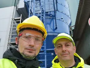 On-site for the system start-up were our Sales Manager Krzysztof Szarow and Technical Manager Marcin Wrzesiński, pictured here showcasing their yellow safety gear.